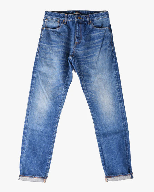 Japan blue J201 14.8oz US Cotton Tapered Selvedge Jean - Mid Wash
