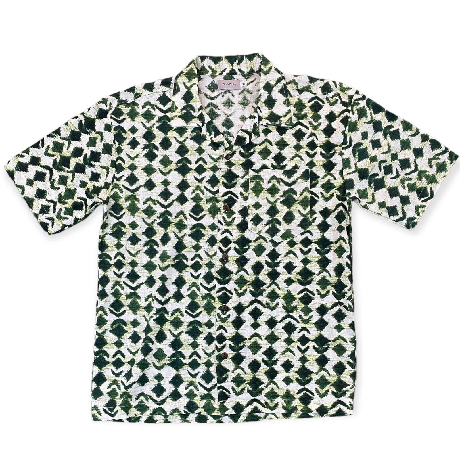 $129.00 AUDGood Shirt Short Sleeve Open Collar Shirt - Green Abstract