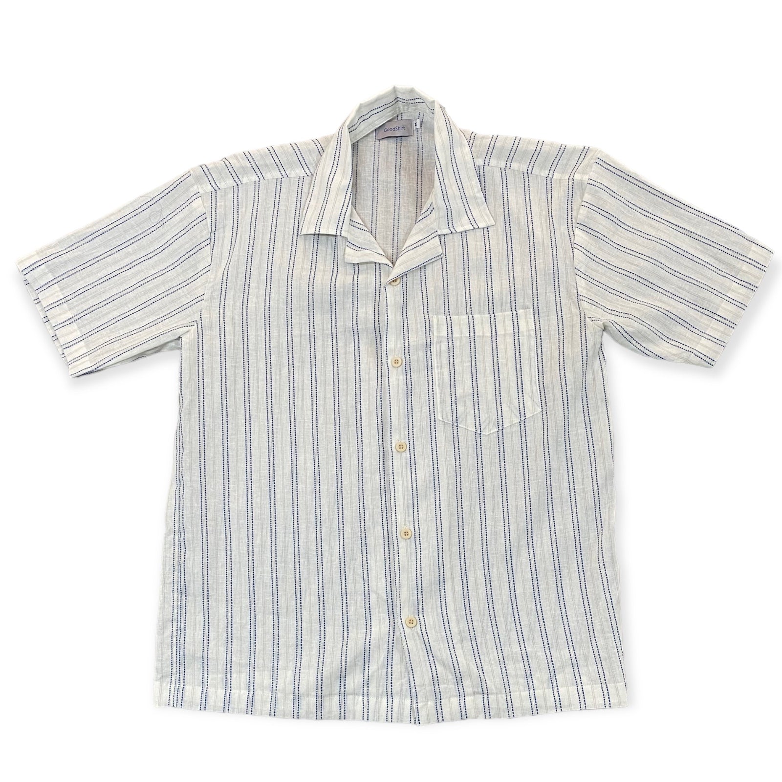 Sold OutGood Shirt Short Sleeve Open Collar Shirt - Blue Dobby Stripe
