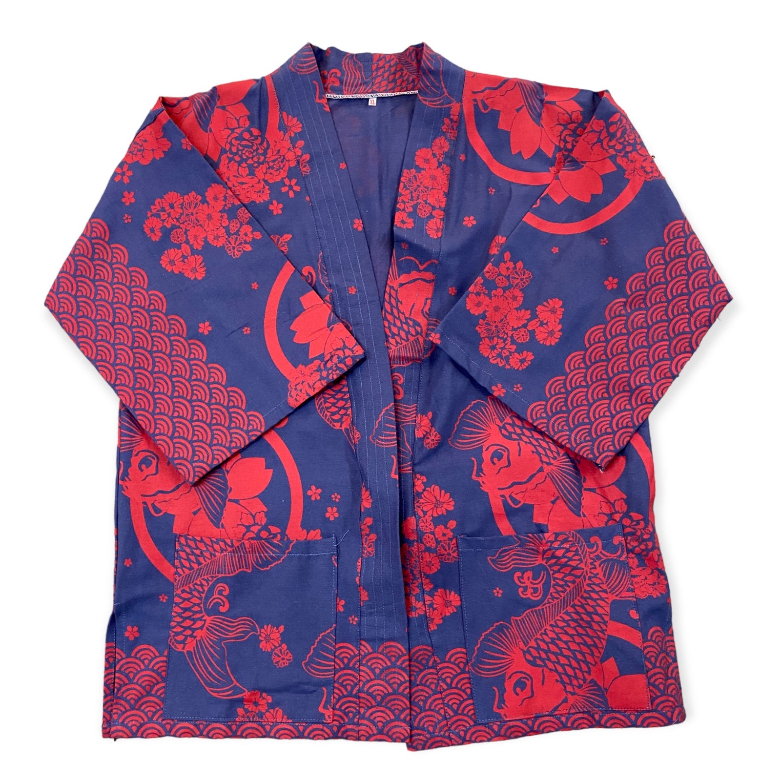 $175.00 AUDIndigo Dyed Kimono style top - Indigo/Red Koi